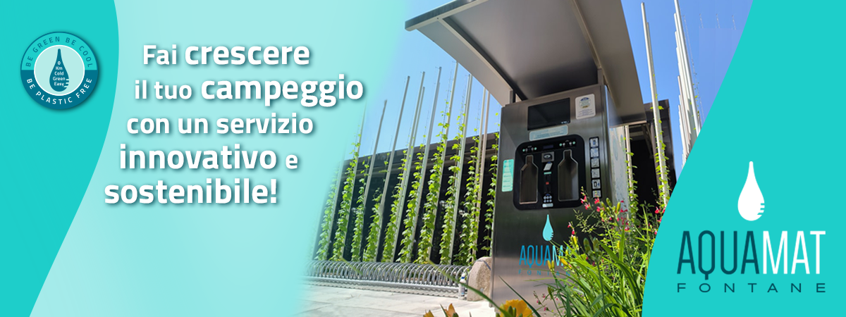 Le Fontane AQUAMAT svolgono un servizio di distribuzione d’acqua refrigerata, progettato esclusivamente per campeggi e villaggi turistici. Il servizio include un sistema completo che va dal software di gestione, ai sistemi di pagamento, fino alla comunicazione visiva, il tutto pensato per renderne l’utilizzo il più semplice e pratico possibile da parte dei clienti.