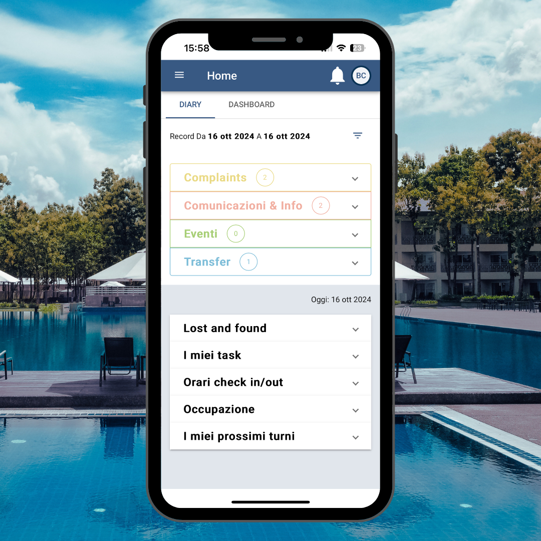 - La piattaforma fornisce una visione d’insieme chiara e dettagliata dello stato delle camere, delle richieste degli ospiti e delle attività in corso.