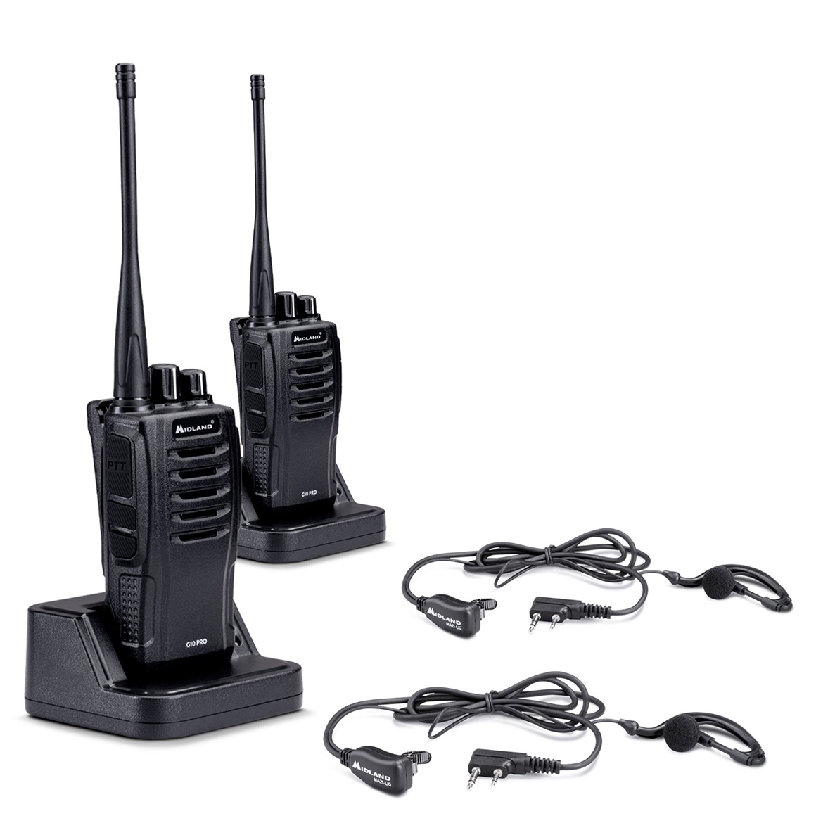 Il walkie-talkie G10 Pro è adatto per l’uso in nei camping e village, nei cantieri e in strada, perché efficace e robusta, con un pacchetto di funzioni essenziali che garantiscono la rapidità delle comunicazioni. Per esempio, con la funzione “Scan”, sbloccabile tramite programmatore (opzionale), la radio controlla costantemente i canali per trovare delle conversazioni in atto e settare la radio nel canale occupato. 32 canali totali – 16 in più rispetto al modello precedente – sfruttano la banda di frequenza estesa (446.00625 – 446.19375MHz), con 50 toni CTCSS e 116 DCS, normali e invertiti, segnalati dall’indicazione vocale. La batteria al litio garantisce un lungo utilizzo ed è automaticamente gestita dalla funzione Auto Power Save per un’efficacia dei consumi e del risparmio energetico. Il design pulito si completa con la clip a cintura, all’interno della confezione, subito montabile. G10 Pro possiede una vasta gamma di accessori: il caricatore multiplo a più postazioni (4 e 6 radio), diverse tipologie di microfoni (auricolari, con o senza PTT, pneumatici, solo per nominare le principali) con presa 2 pin Kenwood.