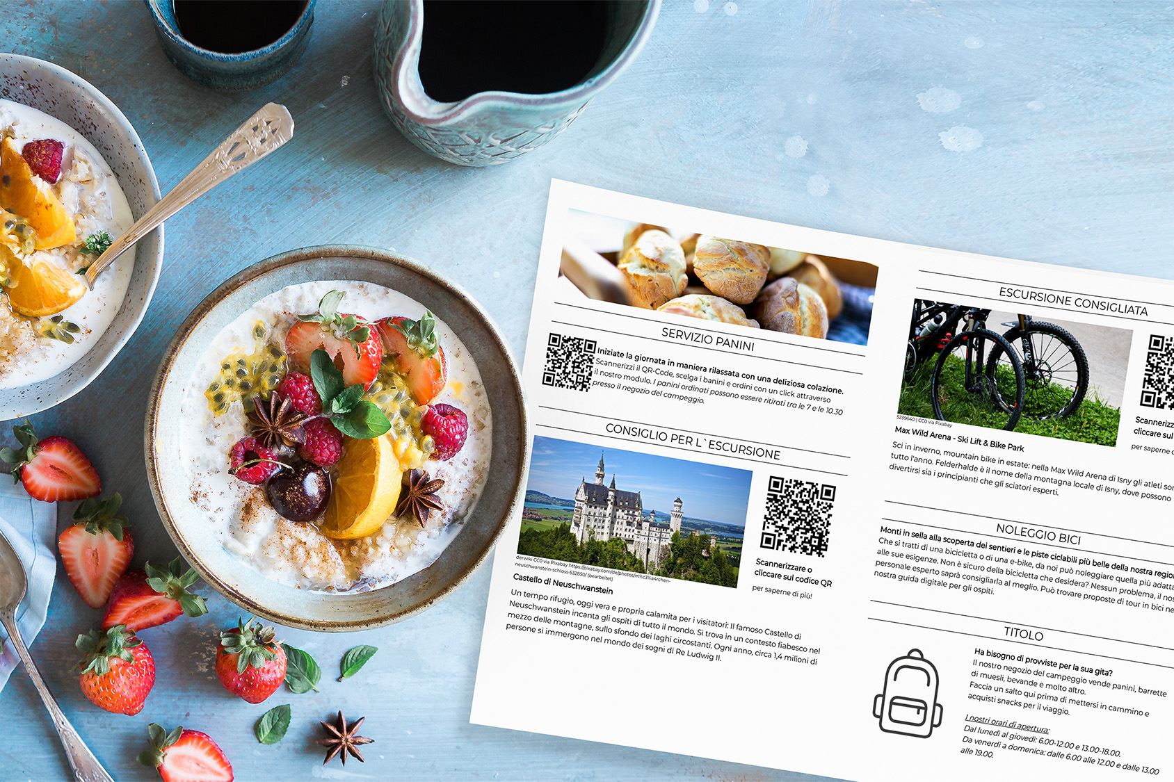 Come lettura quotidiana al mattino, giornale settimanale o menu e lista delle bevande: L’esclusivo Giornale del campeggio non è solo una lettura piacevole per gli ospiti, ma anche un modo utile per promuovere offerte e servizi.