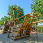 La Nave dell’Esploratore è una struttura da gioco che attira i bambini con una vasta gamma di attività ludiche sia sotto che sopra coperta, progettata per stimolare il movimento, la creatività e le abilità sociali. Realizzata in legno di Robinia, uno dei materiali più resistenti e durevoli, questa nave offre un’esperienza di gioco che dura nel tempo, mentre si integra armoniosamente nell’ambiente circostante grazie alla bellezza naturale del legno.